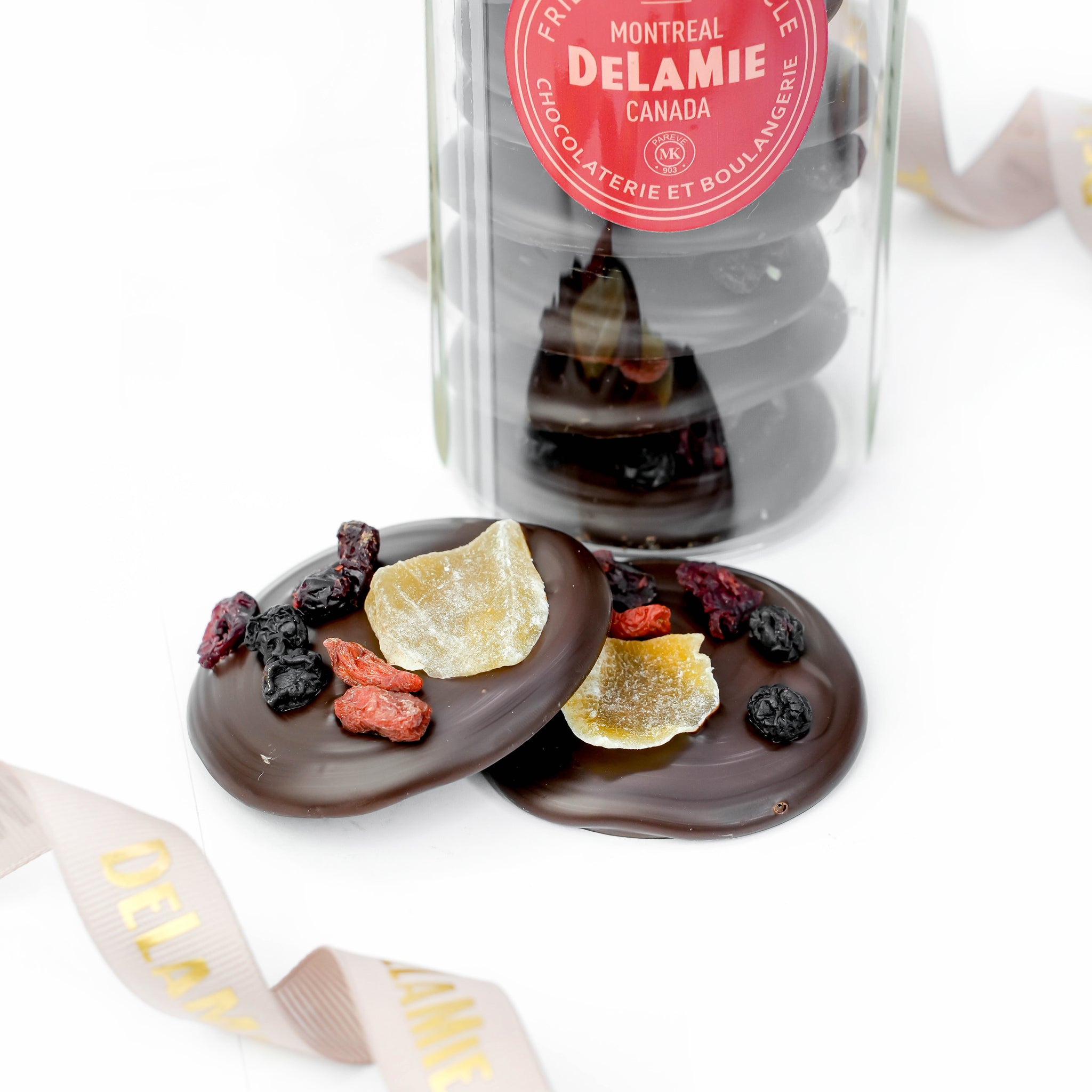 Truffles, mendiants, 1 hot chocolate bomb, and a box of 4 Dubai chocolate bonbons. A delicious upgrade for the holiday season.