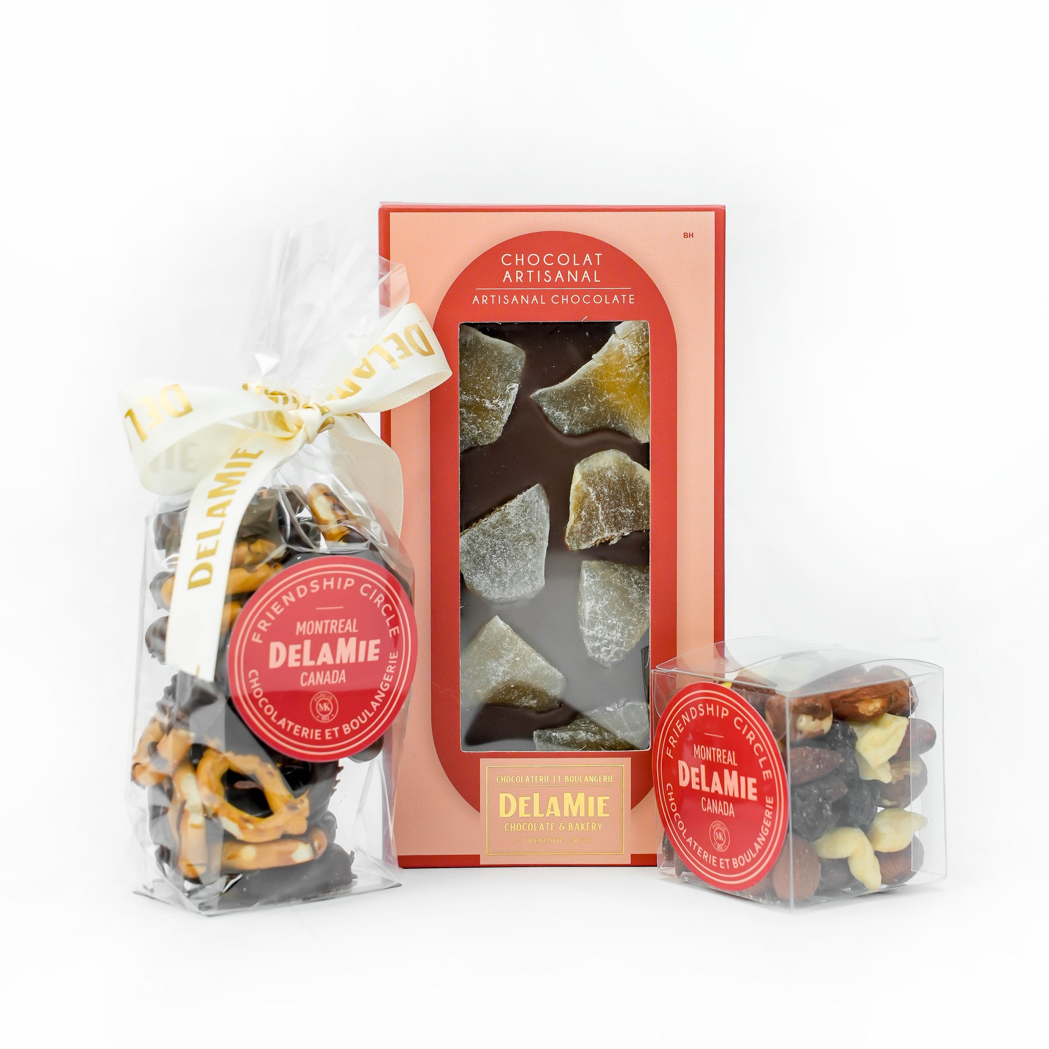 For the Gluten Free Variant, instead of the chocolate dipped pretzels, there will be chocolate mendiants.